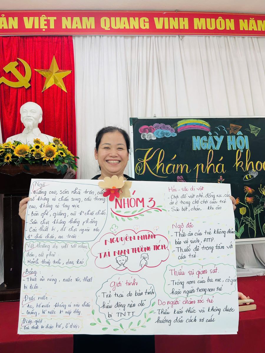 Chuyên đề đã thu hút sự tham gia tích cực của đội ngũ cán bộ, giáo viên và nhân viên. Các nhóm thảo luận sôi nổi, chia sẻ kinh nghiệm thực tiễn và đề xuất nhiều giải pháp sáng tạo nhằm nâng cao chất lượng chăm sóc – nuôi dưỡng trong nhà trường.