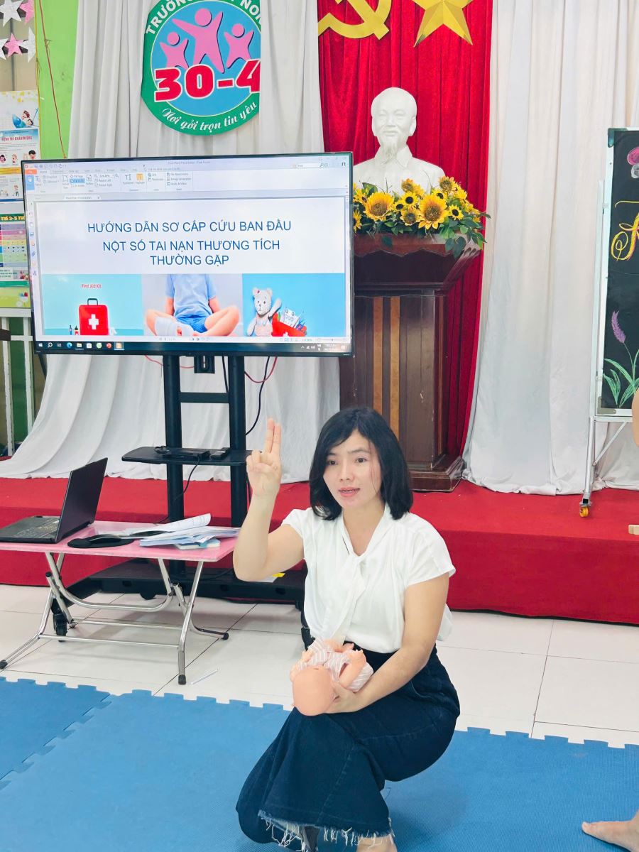 Thực hiện nhiệm vụ năm học 2025–2026 và nhằm nâng cao chất lượng chăm sóc – nuôi dưỡng trẻ, Trường Mầm non 30/4 tổ chức Chuyên đề “Nâng cao chất lượng chăm sóc toàn diện trẻ mầm non theo hướng kết hợp dinh dưỡng, thực hành thói quen vệ sinh với tăng cường vận động” cho toàn thể cán bộ, giáo viên và nhân viên.