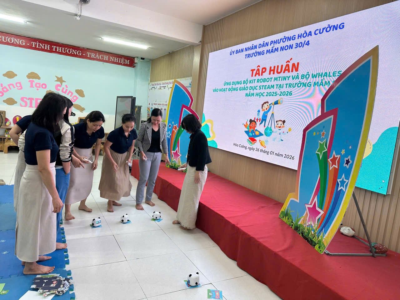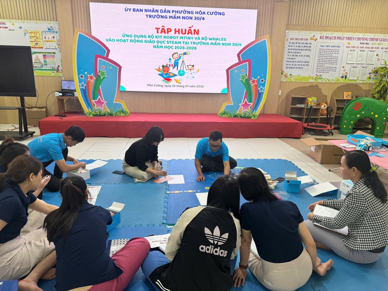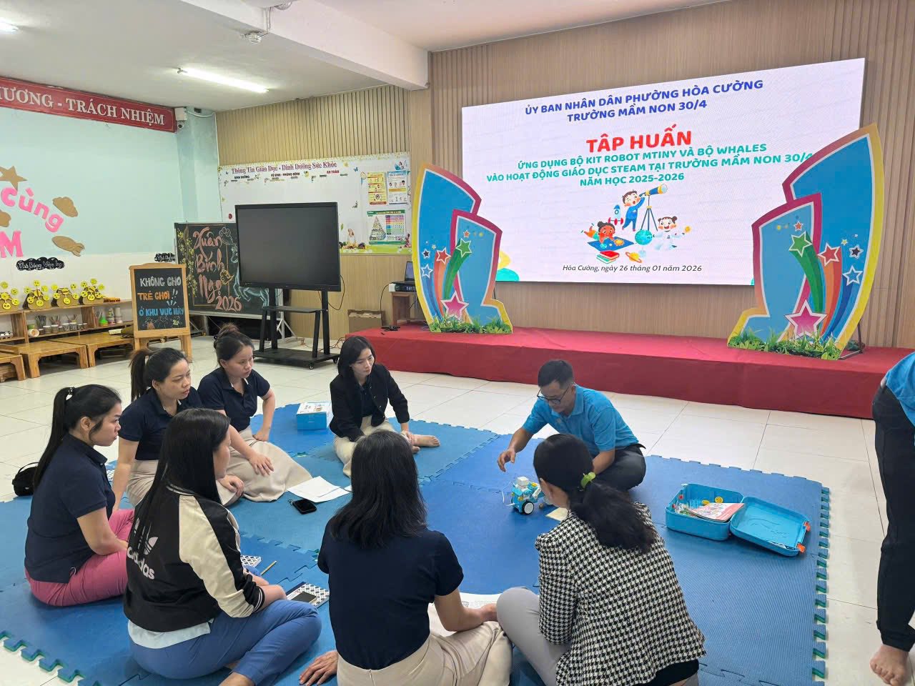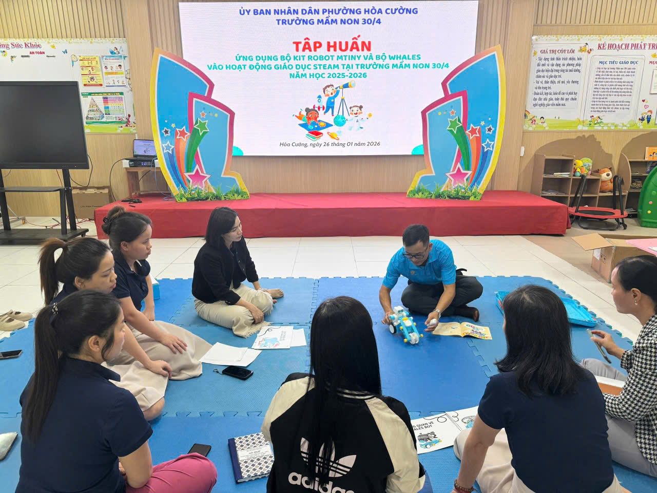 Nhằm thực hiện tốt công tác Bồi dưỡng thường xuyên cho giáo viên hàng năm, đồng thời giúp giáo viên chuẩn bị tốt mọi điều kiện về tinh thần để thực hiện công tác CSGD trẻ MN trong năm học mới, hôm nay trường MN 30/4 rất vinh dự được đón TS Nguyễn Tuấn Vĩnh, trưởng khoa GDMN, ĐHSP Huế tập huấn cho tập thể CBGVNV nội dung "Chăm sóc sức khỏe tâm thần, hướng tới xây dựng trường MN hạnh phúc". Tập thể đã được lắng nghe những chia sẻ của thầy về cách thể hiện cảm xúc, cách điều hòa cảm xúc, sự biết ơn, để từ đó thêm yêu nghề, mến trẻ, yêu thương cuộc sống. Mỗi một cá nhân hạnh phúc sẽ lan tỏa niềm hạnh phúc đến tất cả mọi người. Một ngôi trường hạnh phúc khi cô và trẻ cùng hạnh phúc.