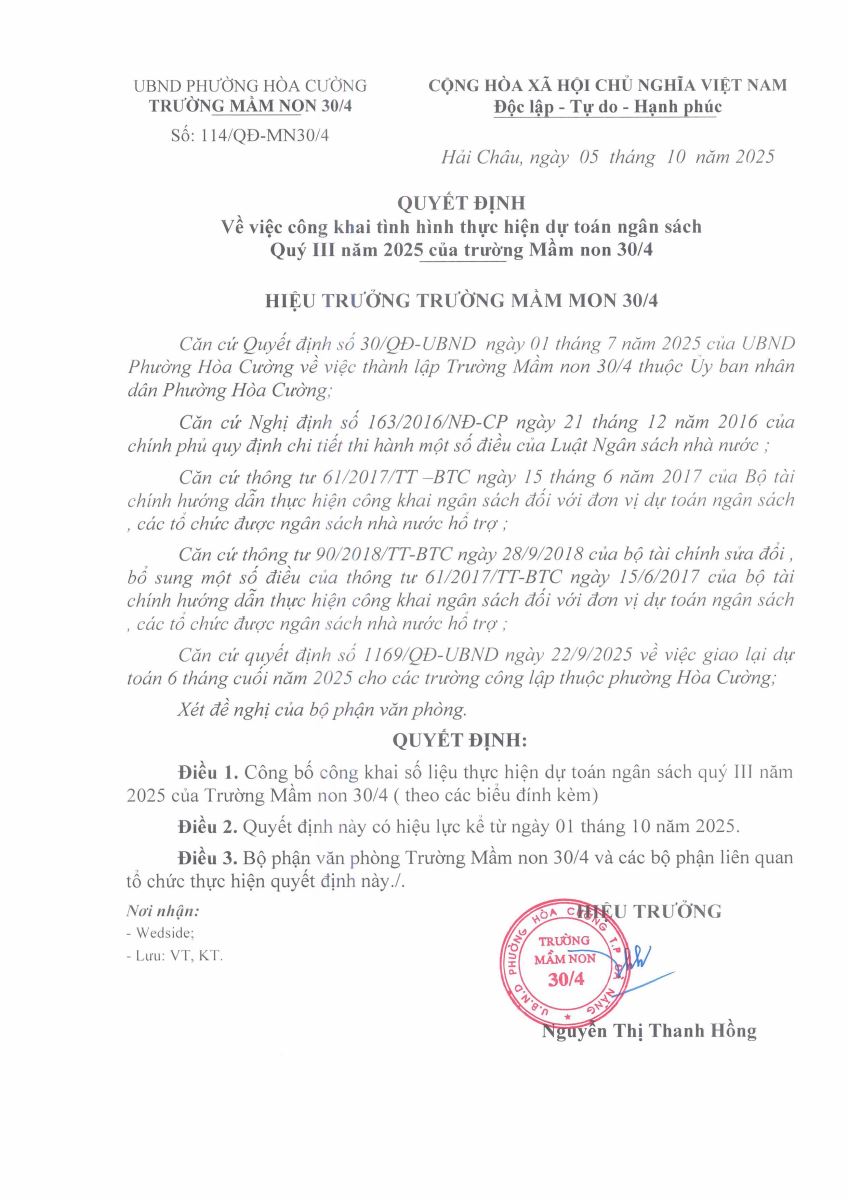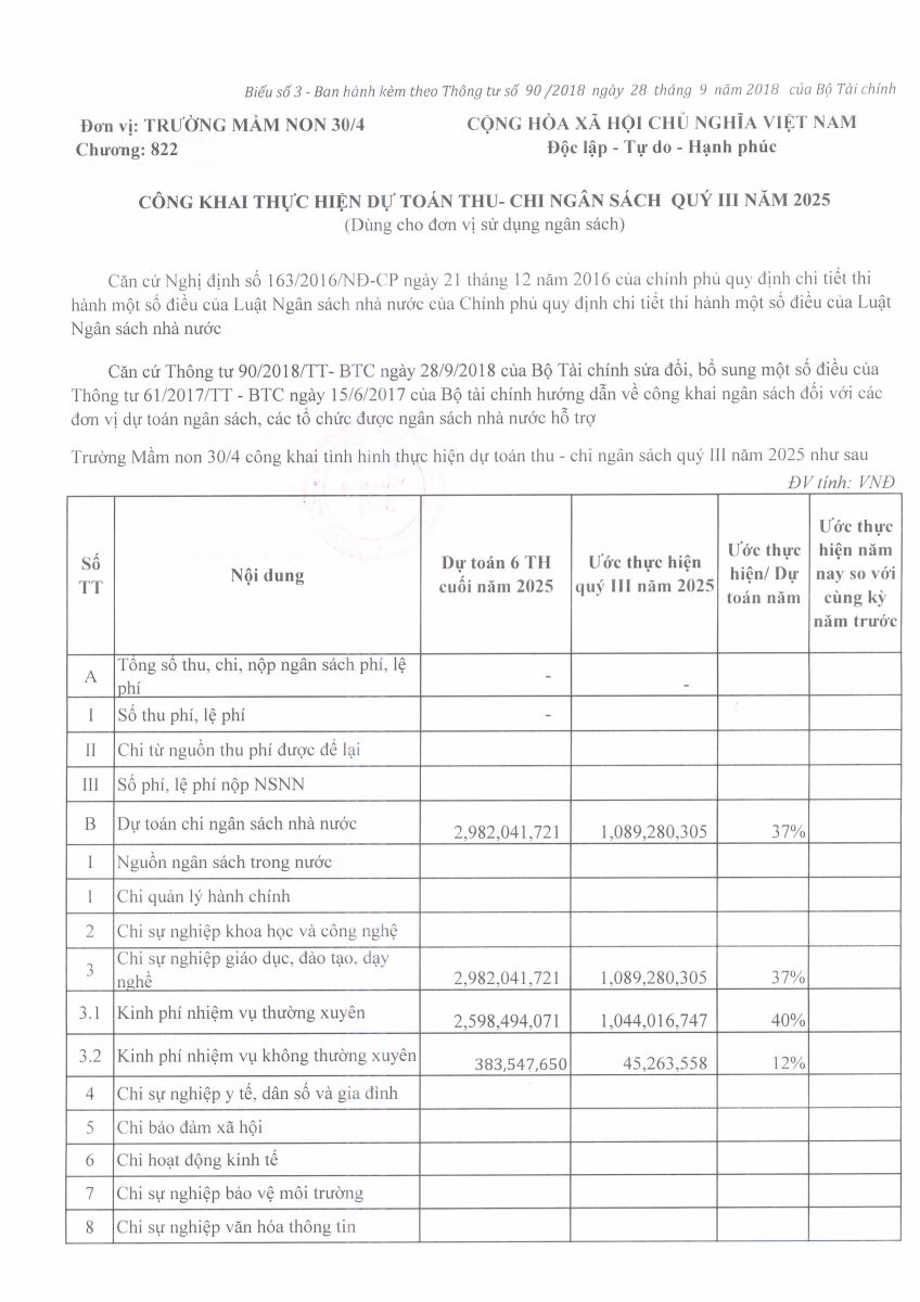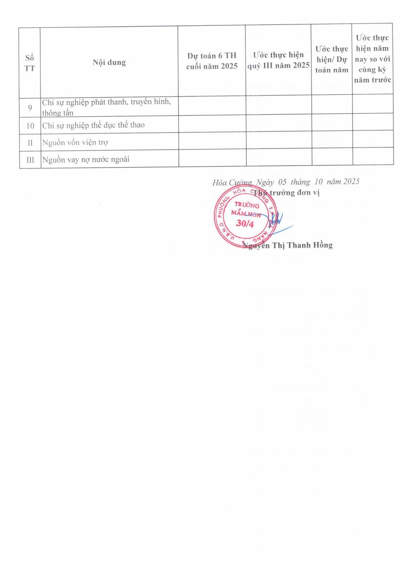 CÔNG KHAI LẠI DỰ TOÁN NGÂN SÁCH 6 THÁNG CUỐI NĂM 2025 CỦA TRƯỜNG MẦM NON 30/4