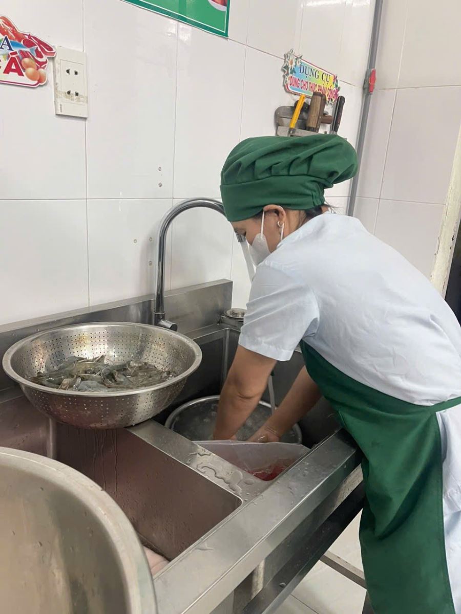 • Quản lý và kiểm soát an toàn thực phẩm: từ khâu nhập hàng, sơ chế, nấu nướng đến lưu mẫu bữa ăn.