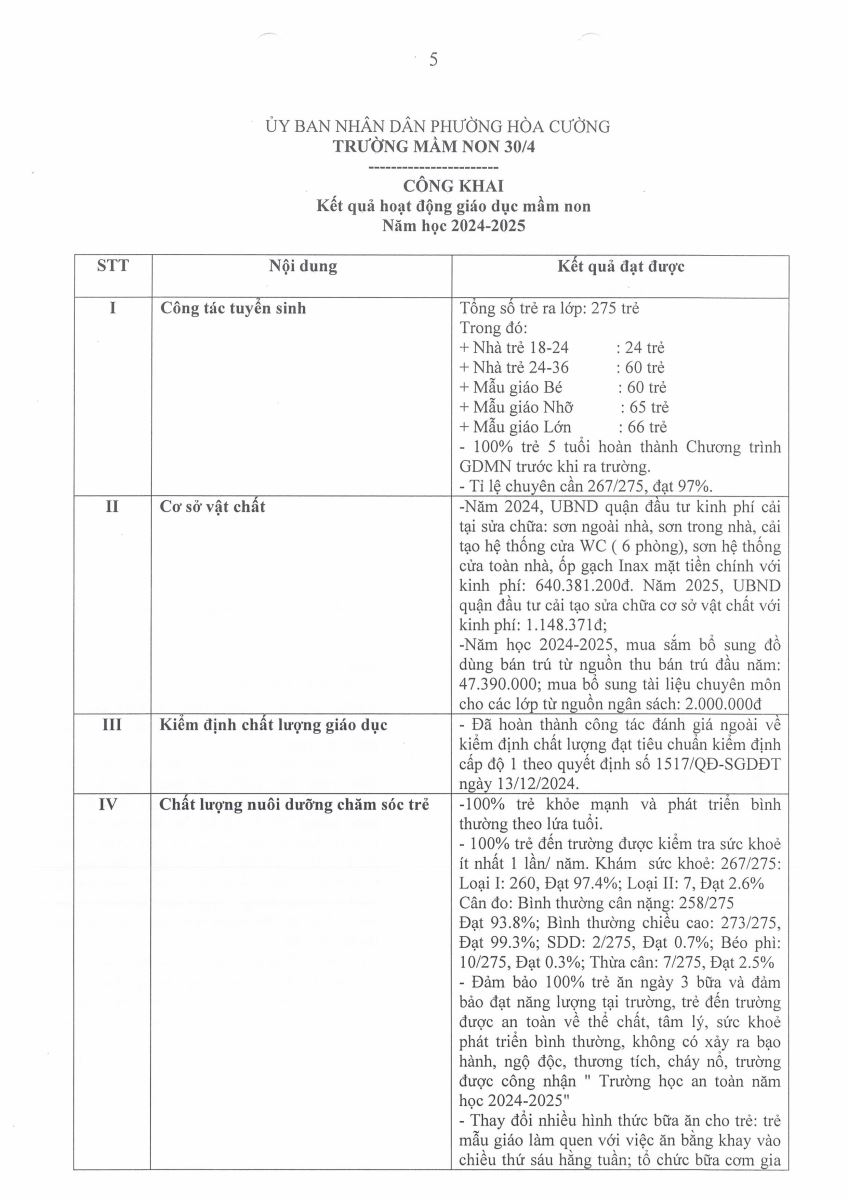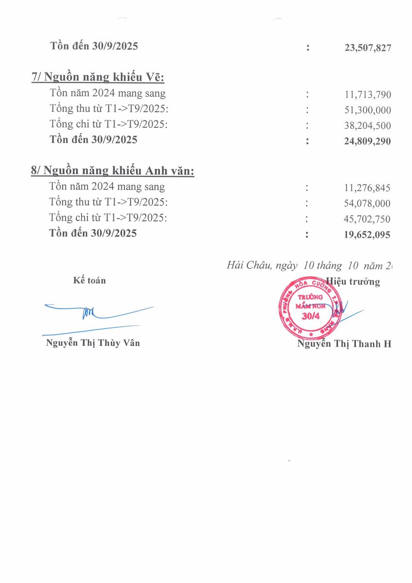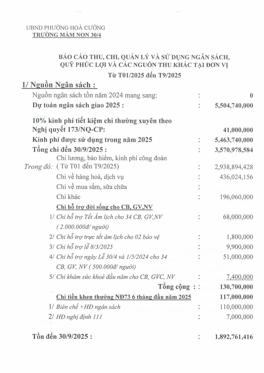 CÔNG KHAI LẠI DỰ TOÁN NGÂN SÁCH 6 THÁNG CUỐI NĂM 2025 CỦA TRƯỜNG MẦM NON 30/4
