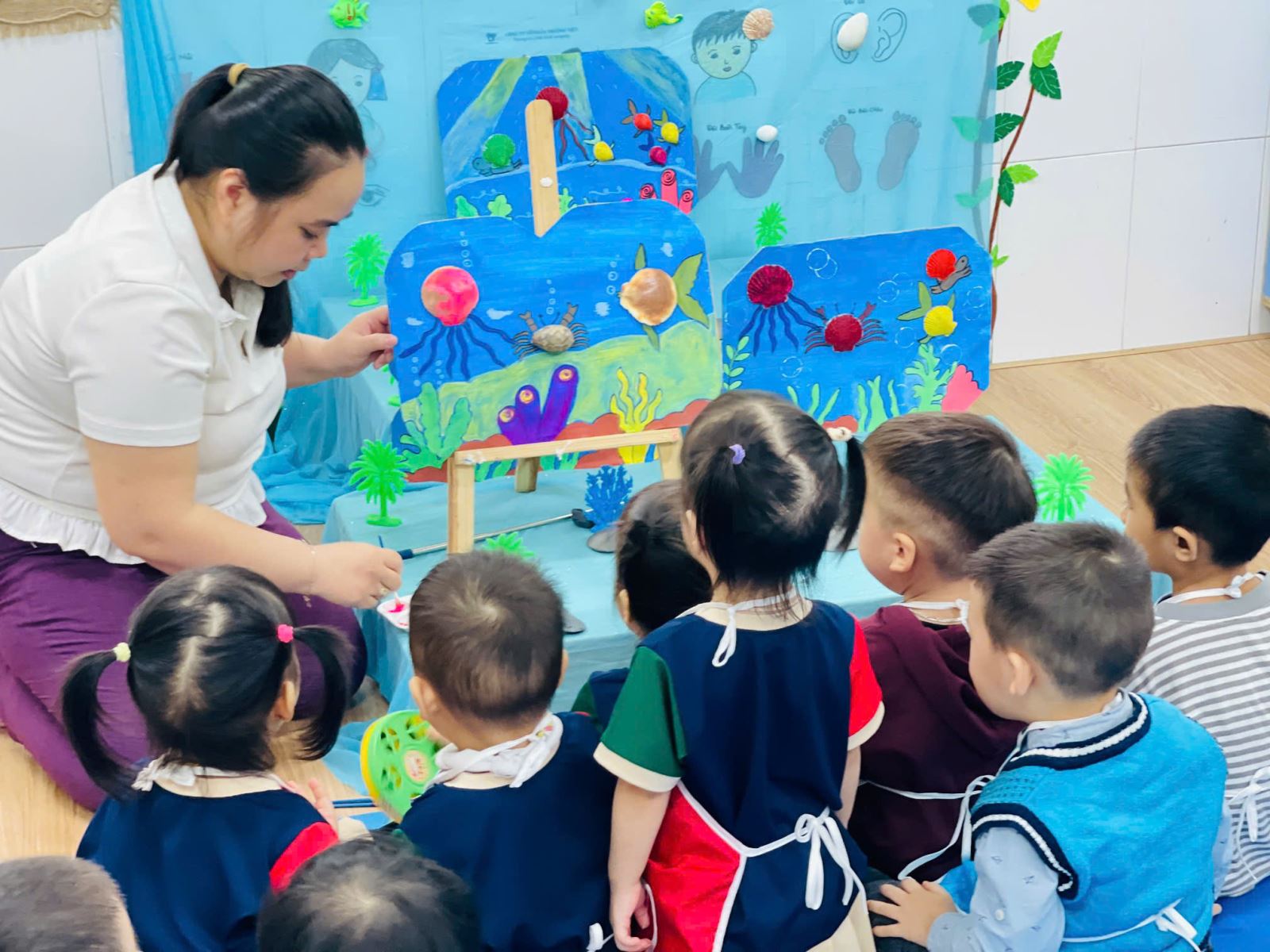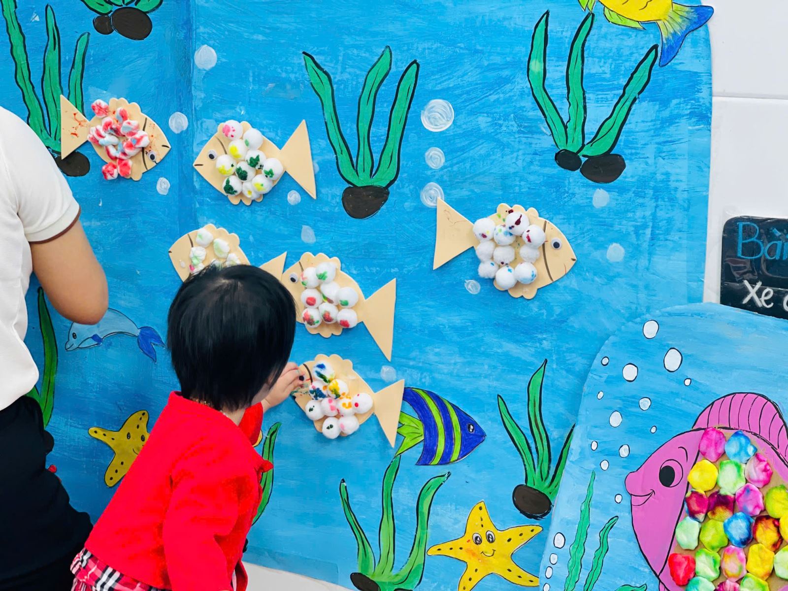 Các hoạt động phát triển nghệ thuật sáng tạo luôn được các bé yêu thích. Các bé được tự do sáng tạo trong các sản phẩm của mình, được làm các thí nghiệm đơn giản nhưng hấp dẫn, các bé đã trả lời được các câu hỏi Vì sao, như thế nào? Đặc biệt, hôm nay các bé thể hiện sự tự tin trước các cô giáo và ba mẹ đến tham dự. Các bé đã thể hiện sự hiểu biết của mình qua hoạt động Khám phá Quy tắc 5 ngón tay, qua hoạt động này, bé có sự hiểu biết về giới và các hành động phù hợp với giới tính của mình, biết bảo vệ bản thân trước các tình huống xảy ra.